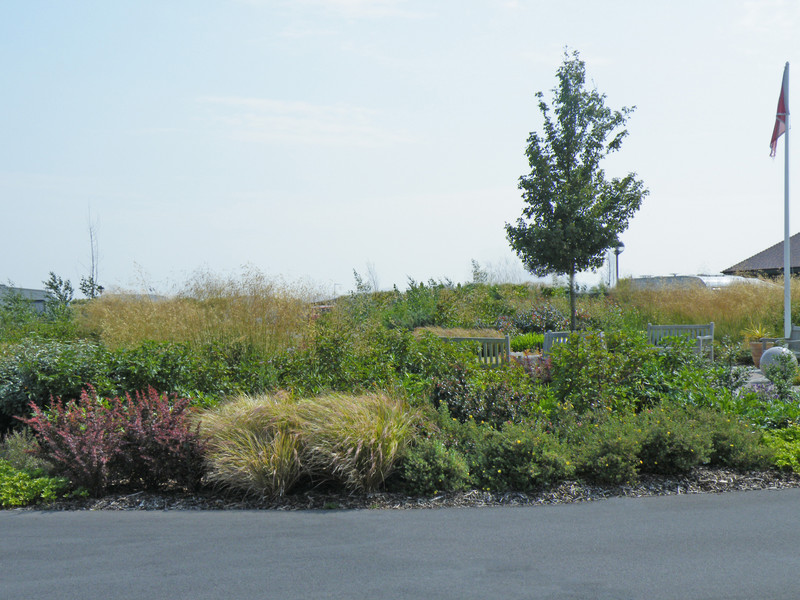 A vibrant and peaceful garden with year-round planting, a central gathering space, and a time capsule designed to last until 3007.