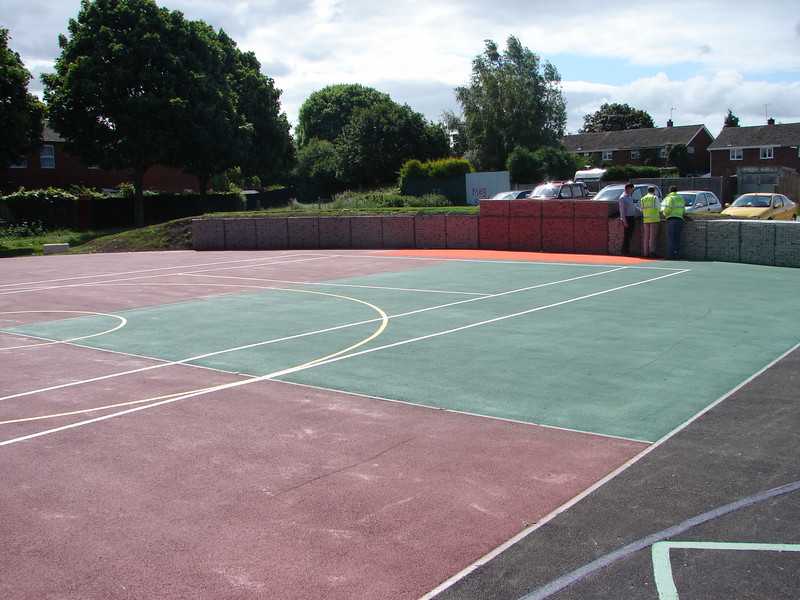 Excavation of groundworks, kerbing and laying of rubber crumb surfaces
